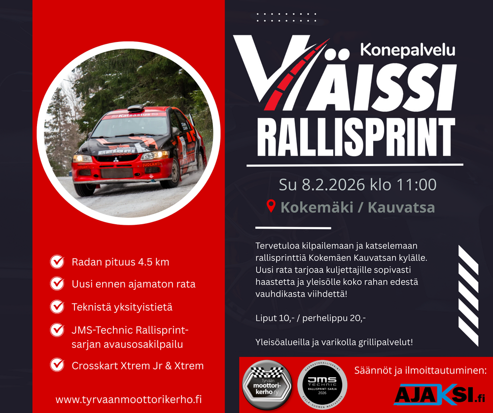 Ilmoittaudu myös JMS-Technic Rallisprint-sarjaan: https://ajaksi.fi/wp/jms-technic-rallisprint-sarja-2026/