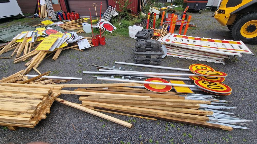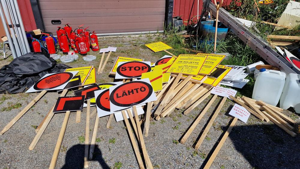 POPUP-TELTTOJA, TELTTAKALUSTEITA, LIIKENNEMERKKEJÄ, LIIKENTEENOHJAAJAN KÄSIOPASTIMIA, SULKUAITOJA-/PUOMEJA/-KARTIOITA YM.
