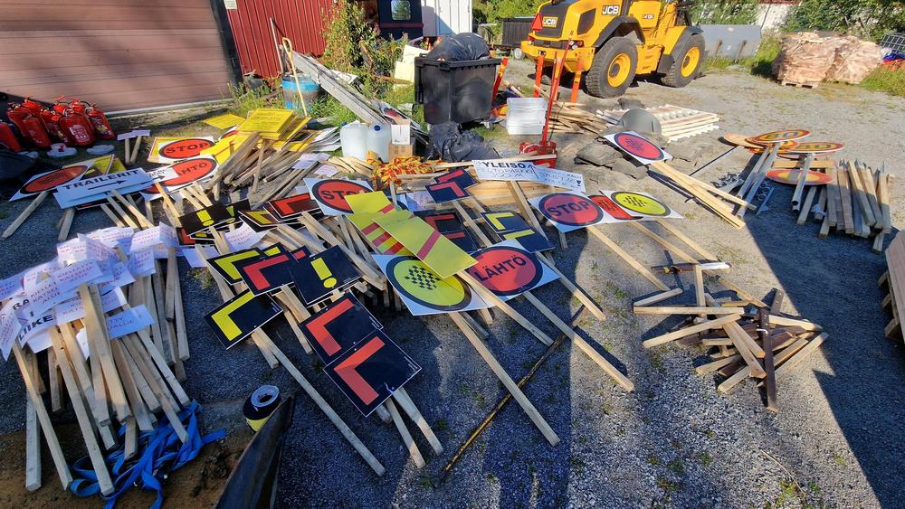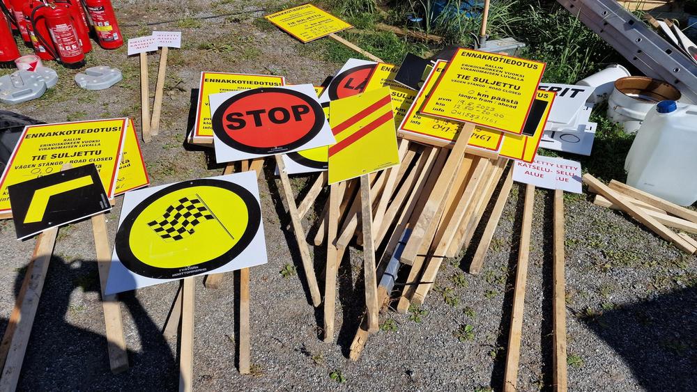 RALLI-/RALLISPRINT-RATAMERKKEJÄ: LÄHTÖ-, MAALI-, RISTEYS-, HUOMIO-, ENNAKKOMERKIT, OPASTEET, RATATUOMARIPISTEET SPRINTTIIN YM.