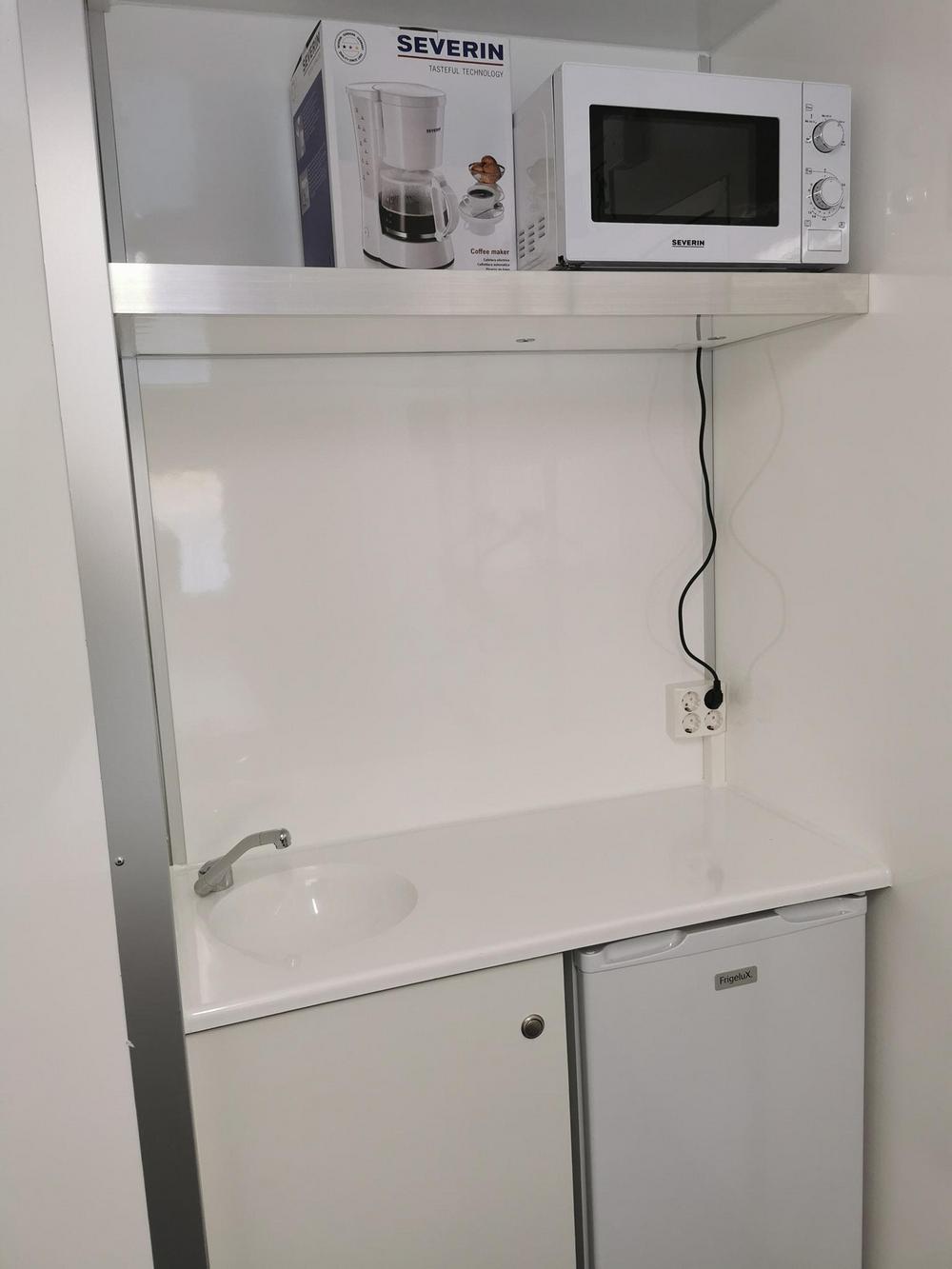 Jääkaappi, kahvinkeitin, mikroaaltouuni, lämminvesivaraaja