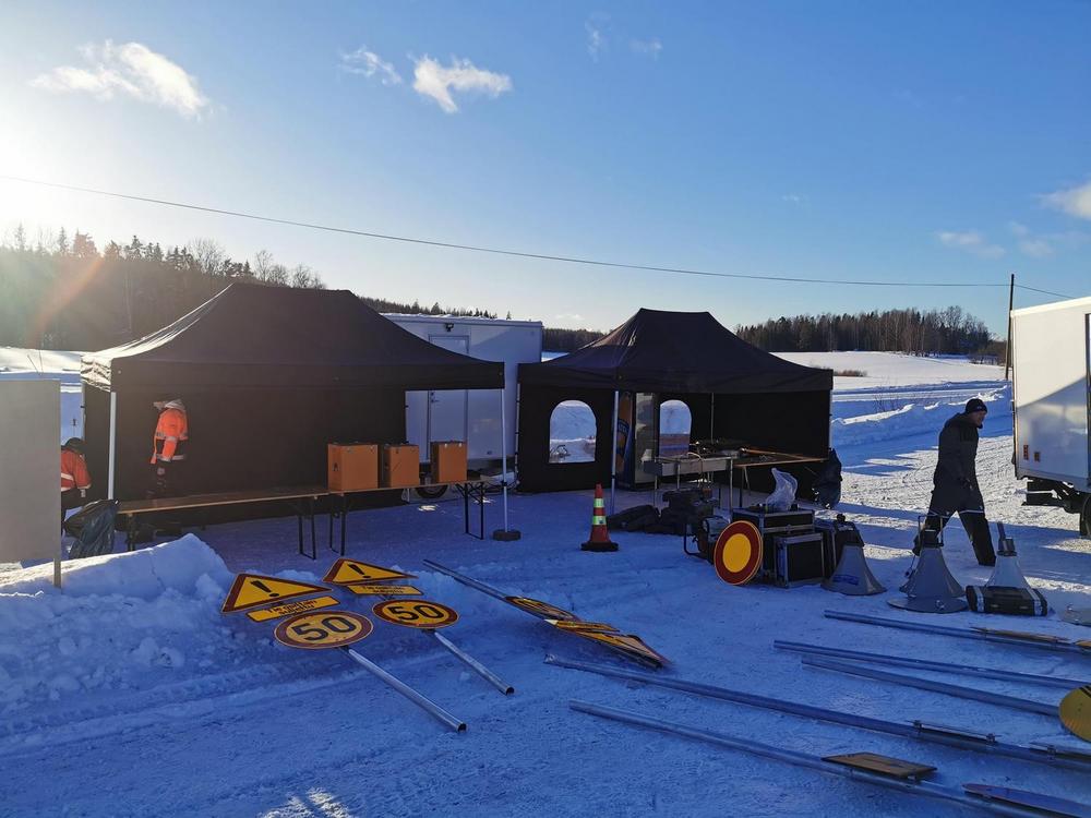 Kilpailutoimisto, taukotila, lipunmyyntikoppi, selostuskoppi, tuloslaskennan tilat tms.