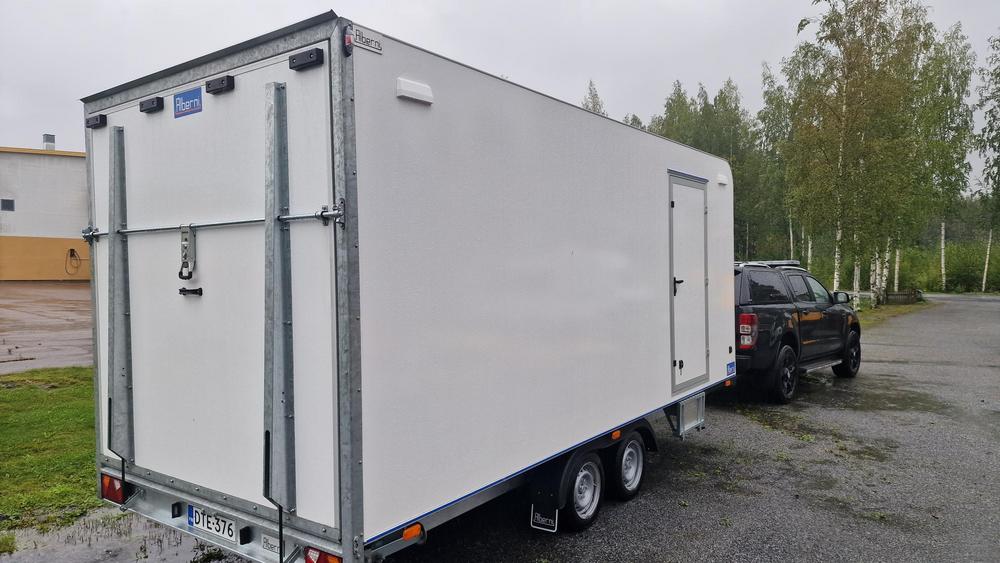 KULJETUSKALUSTOA: KUOMUPERÄVAUNU, ISO UMPIKAAPPIPERÄVAUNU 5x2,5m, LAVETTIPERÄVAUNU, PYÖRÄKUORMAAJA TRUKKIPIIKEILLÄ/KAUHALLA/NOSTOPUOMILLA
